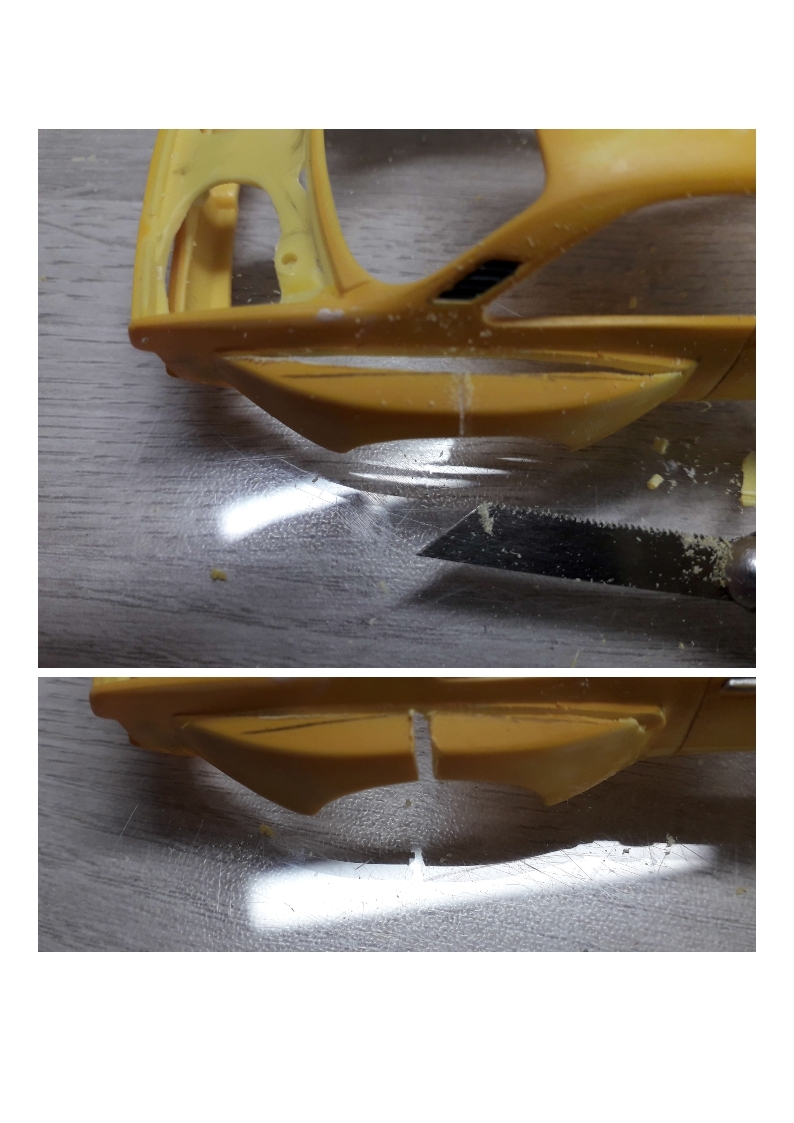 L'épaisseur du plastique (c'est costaud du Carrera) permet largement de limer le haut, j'ai besoin d'ôter environ 0.8mm.