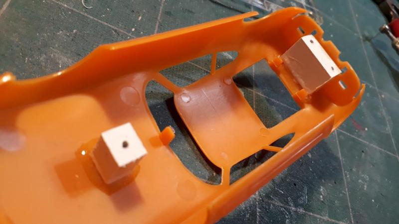 Après séchage de la colle ( soyez patient et attendez 24h...), on dévisse et on sépare du châssis la coque équipée de ses puits de vis !