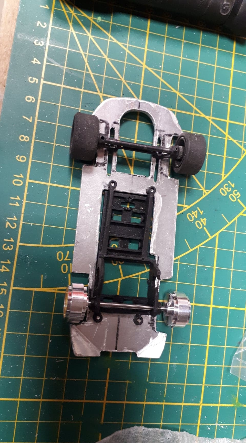 Merci , elle roule deja pas mal, j ai testé la bestiole avec mon chassis alu avant d attaquer a faire la carroserie . C'est pas du slot it mais c'est marrant.
