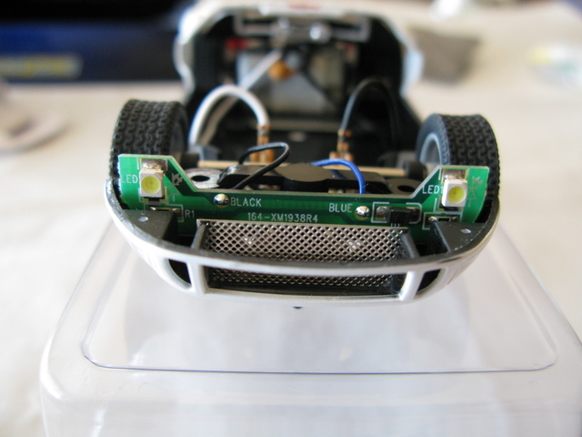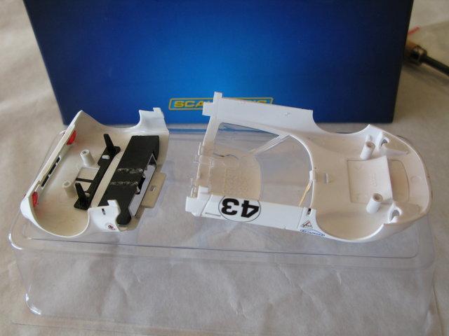 Pour le démontage il faut d’abord soulever l’avant et dégager la caisse du châssis par l’arrière, car les échappements dépassent et il y un risque de les décoller. C’est une pièce rapporté qui tient par deux points de colle.