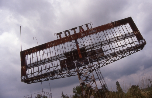Le panneau était sponsorisé par Total et avant cet .......espèce de radar, il y avait une construction métallique en bord de piste comme un grand échafaudage.