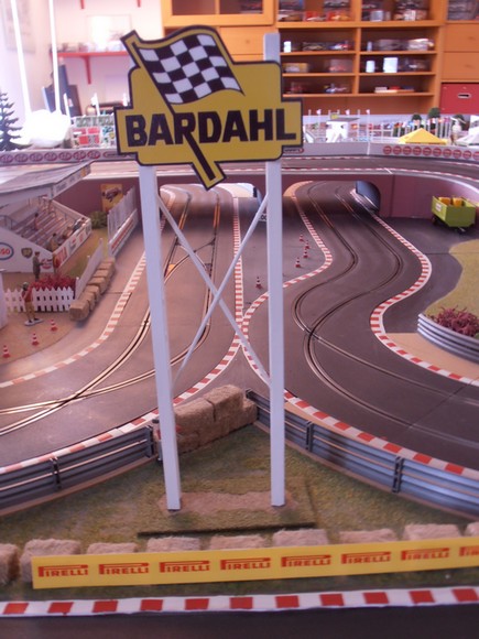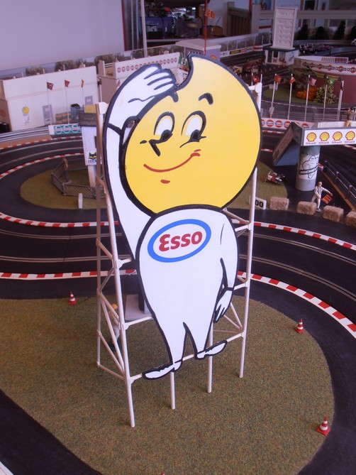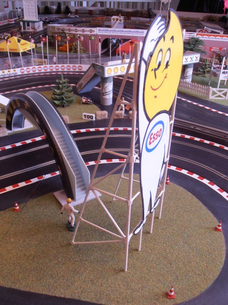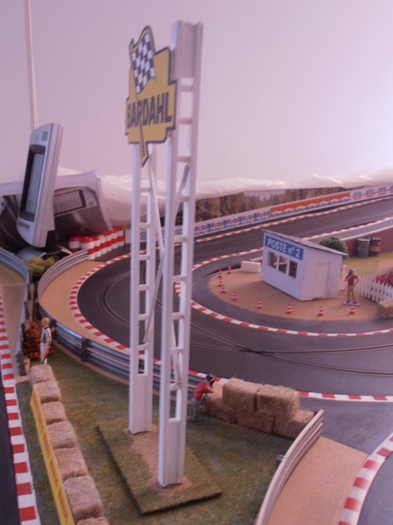 Voici quelques photos de panneaux publicitaires, fait maison, avec des calendriers, piques a brochettes, allumettes, papier, peinture et un peu d'huile de coude...pour la déco du circuit, ça rend pas mal....