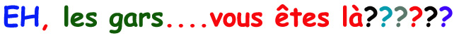 même pensée que toi .... toujours pas là nos "gros boudeurs" bon ....il faut qu'on les appelle ... on peux y aller.... c'est papotages...