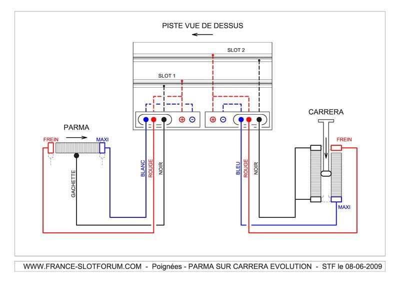 J'ai soudé mes poignées Parma sur les connectiques Carrera, et ça fonctionne nickel. Le croquis est parfaitement juste. Je pense modifier la connectique plus tard, le diamètre du fil Carrera est vraiment minuscule.
