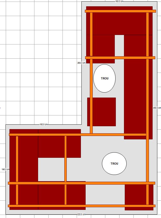 Du coup pour tes "trous" tu vas faire comment avec tes caissons ??? tu comptes laisser des espaces sans caissons au niveau des "trous" ?Je visualise toujours pas bien l'intérêt... surtout si tu peux avoir accès à l'intérieur du L ?