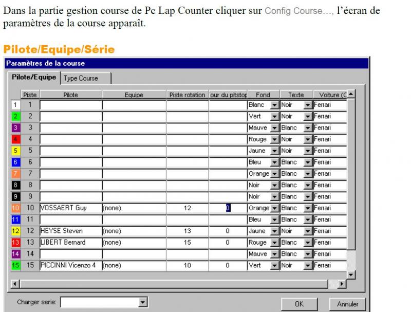 Je vous explique, J'ai un circuit carrera digital 1/32 wireless avec le control unit # 30352 et pc lap counter comme logiciel de gestion. Je peux programmer une voiture fantôme avec le cu de carrera pour ça pas de problème ça marche. Mais la il me semble avoir lu quelque part que pc lap counter prend en charge les voitures fantôme et qu'il faut mettre la voiture sur la piste # 7 et ensuite faire un réglage pour la vitesse. J’ai suivi l'exemple sur le site de pclc mais sans succès, je sais que ( la manette #1 avec la piste #1 / la manette # 2 avec la piste #2 etc... ) mais si carrera peut avoir six manettes Max. : alors comment on fait pour programmer une voiture fantôme sur la piste #7 et pouvoir contrôler la vitesse avec pclc.