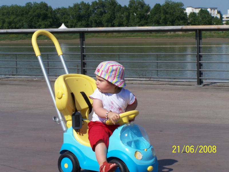 t'as bien raison, bon moi une bonne 1664 bien fraiche, c'est pas que mais bon, il faut sacrement chaud ici aujourd'hui. et donc aujourd'hui nous avons profiter de ce beau soleil ( on a faillis attendre ) et hop apres la sieste, partis sur les quais bordelais ( pas quoi faut bien en profiter, apres tout c'est avec nos impots quand meme ) et puis bon c'est tellement beau maintenant. alors on commence tranquille par les 1er cours de conduite, et hop " retros, clignos, angle-mort", c'est bon je deboite