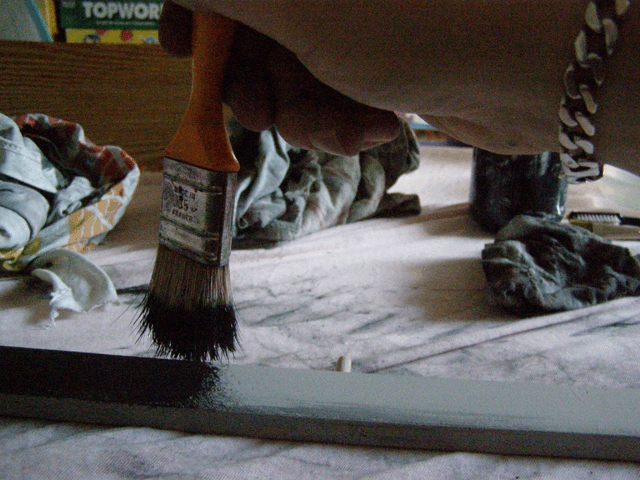 4 - Patinage simple avec la peinture foncée pour faire ressortir les interstices.