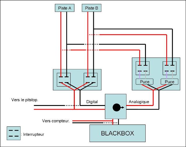@Charly: quand tu as fini, montre nous ton montage et son intégration, ça intéressera certainement bcp de monde ici, moi le premier! Je pense que je vais faire la modif comme toi d'ici peu, mais je voudrais faire un truc moins moche que la dernière fois, peut-être avec un boitier séparé. Tu as pensé qu'il y a une petite différence dans la programmation puisqu'avec la CU c'est la voiture qui se trouve seule sur le circuit qui est programmée? Comme les puces du montage sont connectées en permanence, il faut se servir du coupe circuit pour faire comme si on l'enlevait de la piste.