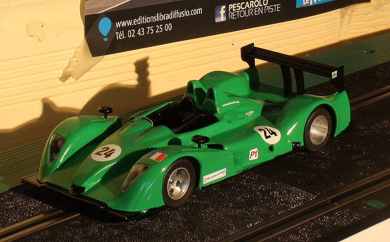 - peinte d'abord en bleu, pose des décals ratée, décapage et choix du vert en hommage à Henri Pescarolo,