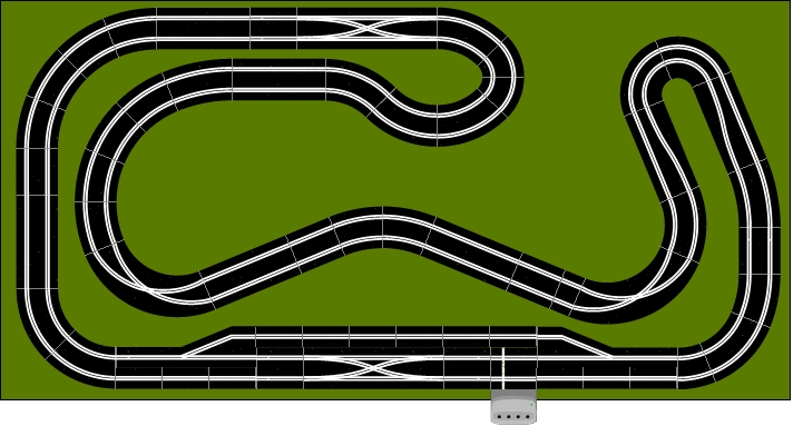 Sans avoir jamais pratiqué un autre circuit que le mien j'ai également une préférence esthétique pour la 2nde idée, même si le premier croisement arrive un peu tôt (comme sur mon circuit actuel), je le mettrais de préférence à la place des deux derniers R2 avant l'épingle R1. Bon on s'en contref... Non ?