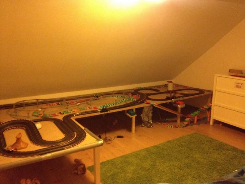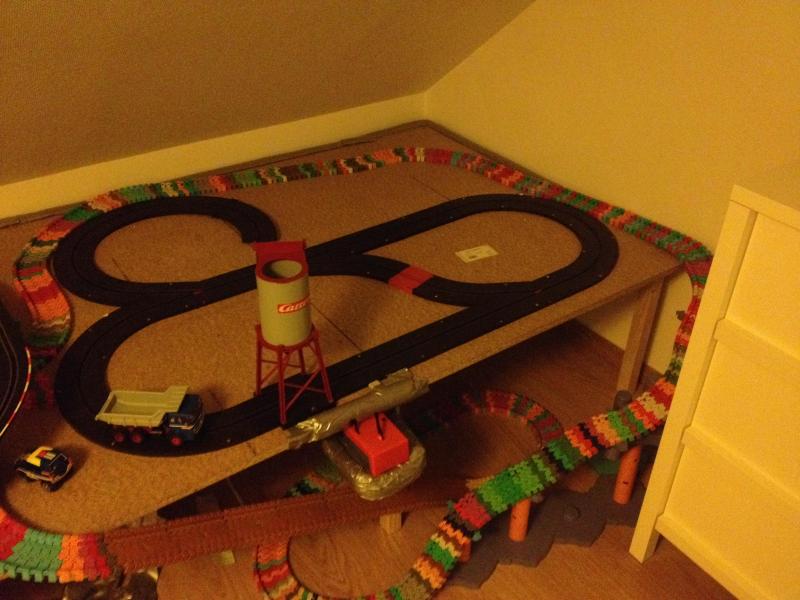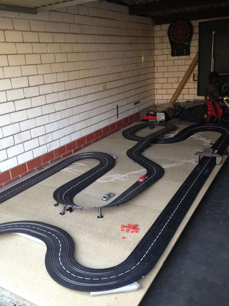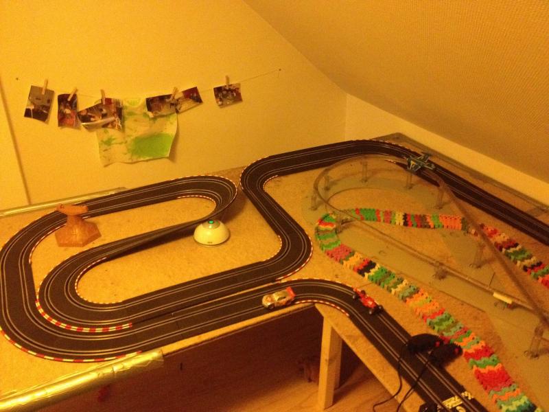 Pour mon parcoure dans le slot ma jeunesse a été marquée par des petit circuit puis vers 12 ans un carrera profi qui devais faire dans les 20metre et ou j'ai eu plusieurs voiture vers 16ans je me suis un peut éloigné du slot puis quand j'ai eu ma maison. j'ai repris un carrera evo pour m’amuse mais seul a joué il n'a pas trop servi au début. quand ali est arrivé chez nous j'ai ressorti le carrera evo pour essayé avec lui voire si il accrochait et si je pourrais jouée avec lui. Comme il aimait bien j'ai acheté un gros pack de rail et monté le circuit dans le garage ou on adore allé s’amuse comme il n'est pas chauffé en hivers pas top donc depuis je lui et fait un circuit carrera go dans la chambre avec qu'elle que autre d’ailleurs