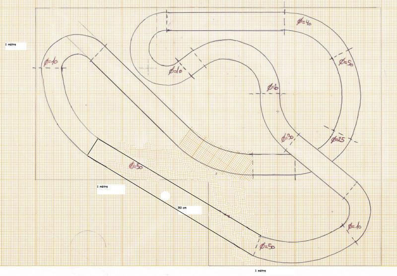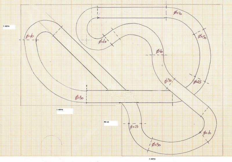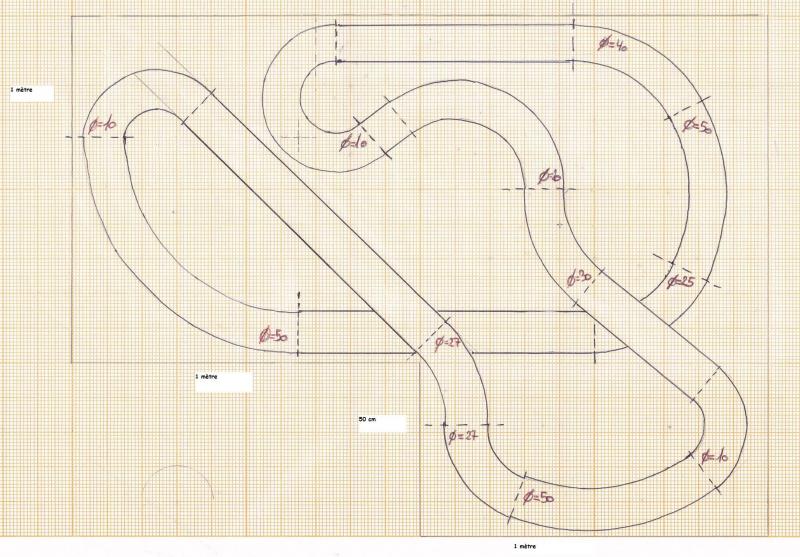 Deuxième question sur la réalisation du tracé: Si j'ai bien tout compris de mes lectures, le bois permet de s'affranchir des virages standards, et des créer ses propres courbes. Là dessus je galère un peu, n'ayant pas de notion des rayons de virages mini, je suis parti de l'idée qu'à main levée et avec un peu bon sens, je devrais réussir à m'en sortir sans être obligé de faire appel à la géométrie... Je vais dans le mur ?