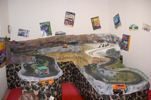 Une splendide piste d'arsouille 30m Ninco en 6 voie analogique/Davic/digital, sur la photo, mon fiston se tape un run!