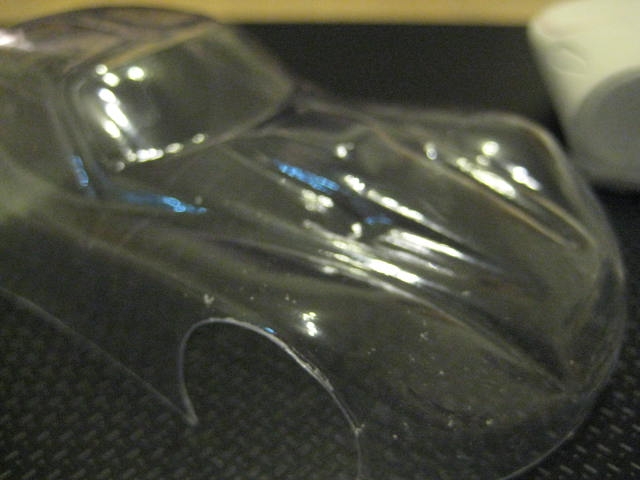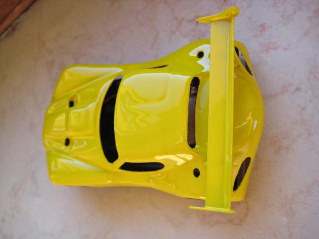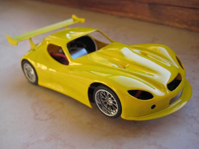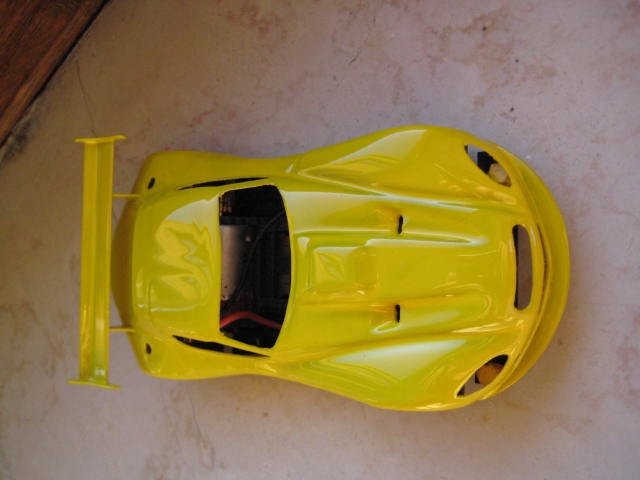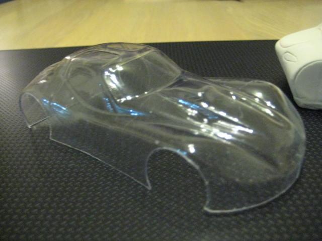 salut , non, j'ai peint comme pour une maquette normale . ce n'est pas du lexan , je thermoforme du polycarbonate plus épais .0,8 mm , ce qui me donne une carro très solide et très légère . celle ci fait 7,5 gr . donc , je ponce , primer et puis peinture etc . je montre bientôt le produit fini .