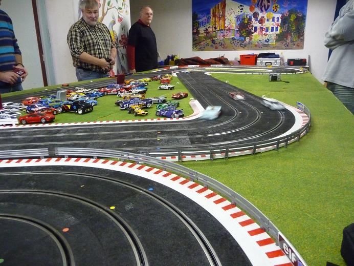 Parmi les personnes présente, j'ai trouver un érudit de la voiture en la personne de Jean-Marc qui a une piste à la Bresse dans les Vosges. Son tracé du mans en CARRERA possède une ligne droite des Hunaudieres (sans la chicane) de 8.50m. Et il a en projet de réaliser une endurance début juillet sur ça piste.