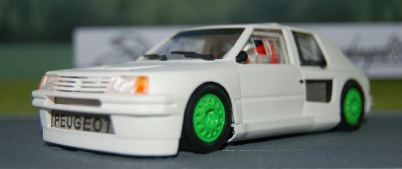 Quelques images d'une petite modification d'une auto existante qui me tenait bien à coeur. Parti d'une Peugeot 205 T16 EVO II de chez Spirit que j'ai commencé par démonter intégralement et décaper, j'ai opté pour une livrée blanc mat intégrale qui se voit rehaussée par des jantes repeintes dans un vert pomme acidulé. Mais ce n'est pas tout, la version Pikes Peak étant terriblement haute, j'ai rabaissé la carrosserie de la belle de près de 4mm pour un rendu davantage tourné vers la piste. Côté mécanique, pas de changement au niveau de la transmission intégrale si ce n'est une suppression de l'aimant, un bon serrage de tout ce qui doit l'être ainsi qu'un graissage en règles. Au final, la belle se révèle bien plus efficace que la version d'origine du fait un très grand abaissement de son centre de gravité. La galerie photo intégrale sur mon site : http://www.johnsmithslotracing.com/2013/01/peugeot