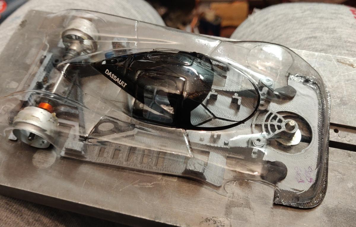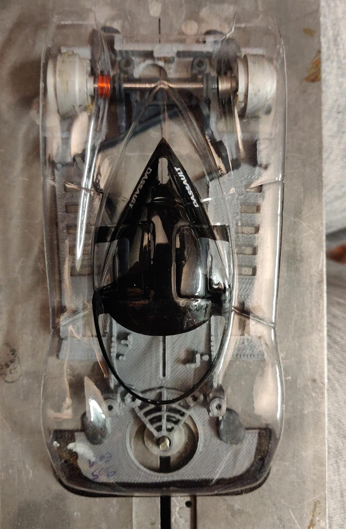Le truc le plus compliqué et chronophage avait été de trouver et d'adapter un châssis pour la Jag. D'autant plus que le point de colle d'araldite des tubes de fixation des attaches de carrosserie ont sauté dernièrement. Bref c'était pas forcement motivant de s'attaquer aux autres coques et ca restait au bout du compte du ''bricolage''