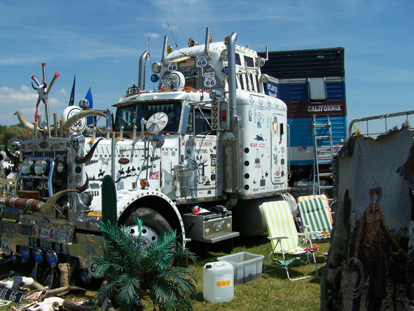 Apparemment, ces voitures sont exposées à l'occasion d'un festival country. J'ai reconnu différentes structures gonflables sur le thème, un rodéo mécanique et surtout le camion "US road 66" bien connu dans le milieu. Où se passait cette manifestation?