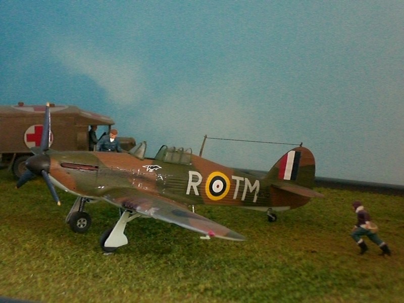 Ensuite,un Hawker Hurricane MKI vu pendant la bataille d'Angleterre,septembre 1940
