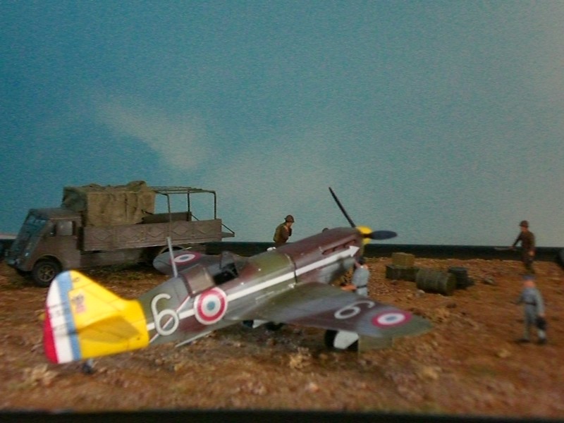 Ensuite,le Dewoitine 520 de l'A/C Le Gloan du GC III/6 contraint à un atterrissage forcé dans le désert de pierrailles près de Rayack en Syrie en juin 1941 après une rencontre avec des avions de la R.A.F.L'empennage et la casserole d'hélice sont jaunes car il s'agit d'un appareil dit de l'armée de l'air d'armistice.Plus tard,ces avions recevront les célèbres (et infamantes) bandes rouges et jaunes sur le nez et l'empennage.