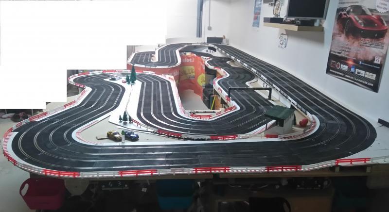 Retour avec un certain retard le présentation ma 1ere piste basée à la limite du 69 et du 42 je suis dans le 38 à Luzinay. Un ninco 2 voies de 23m de long sur un plateau de 4*2m. De bon moments passés de bonnes bourres en souvenir une photo de la dernière course le 8 juillet.
