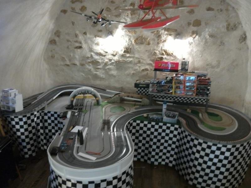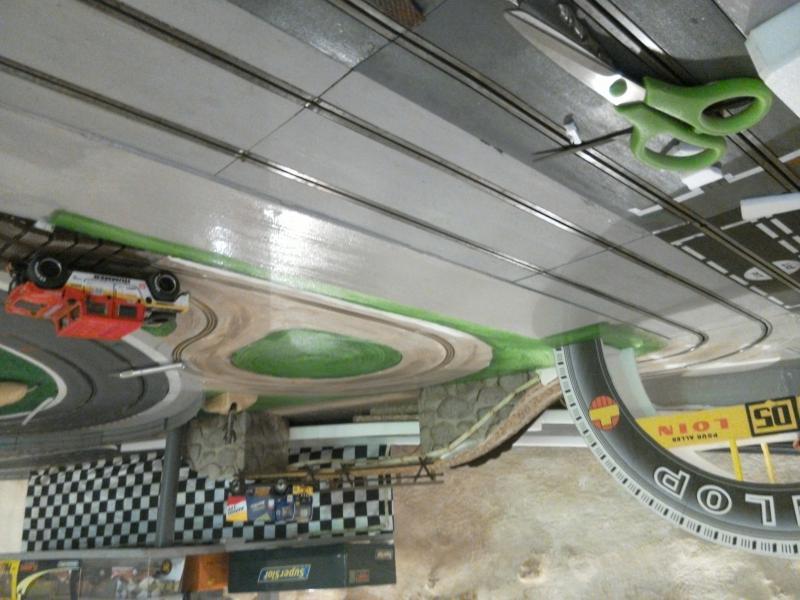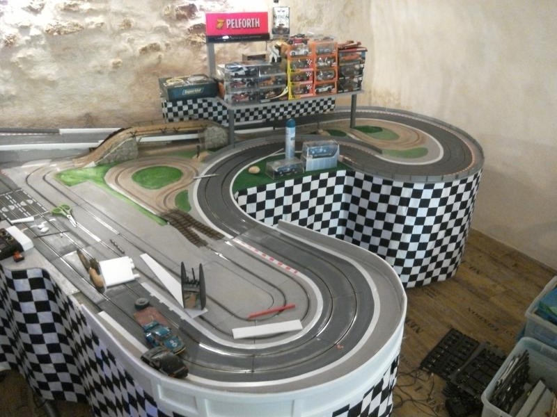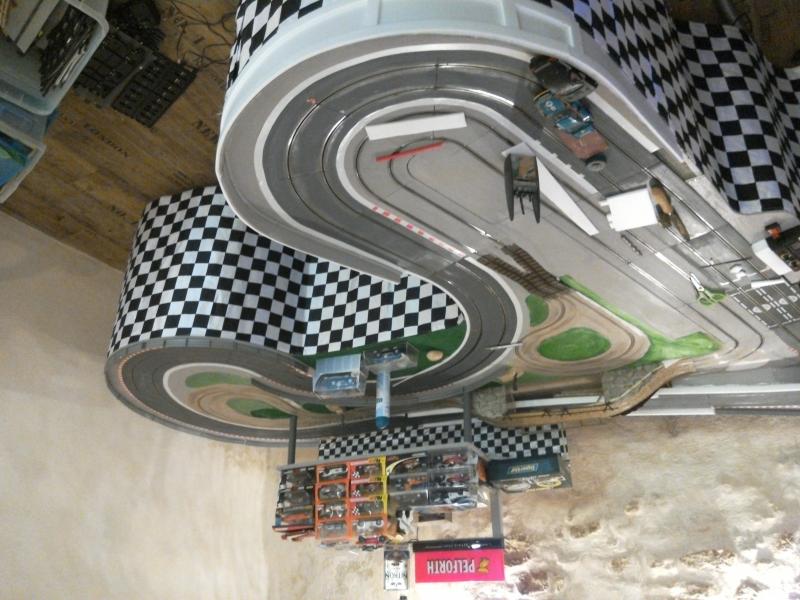 Le circuit est en scalex sport peint. Ca fait longtemps que je peins mes rails, du coup plus de soucis de pneus et ca fait une jolie patine avec de la gomme sur la trajectoire.