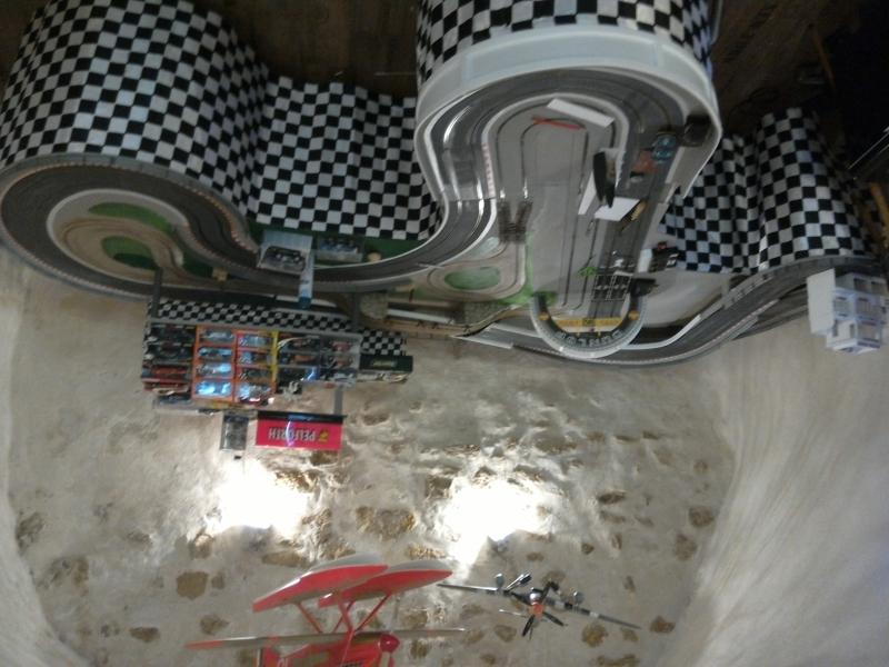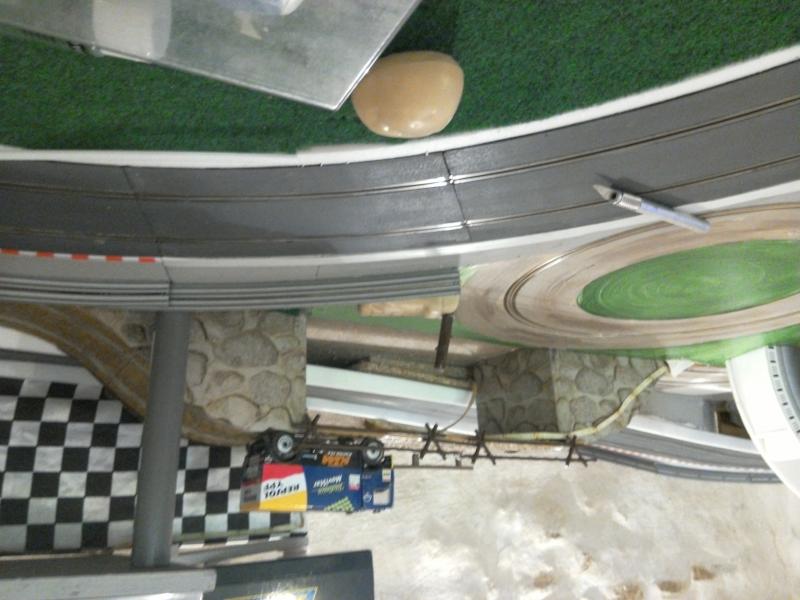 comme toujours, on veut, le beurre, l'argent du beurre et le cul de la crémière, bref, je voulais conserver les deux paraboliques, le banking, et inserer une boucle raid, le tout dans un circuit plus court ( puisque sur roulettes et pouvant pivoter dans la salle. C'est surtout les lignes droites qui on souffert.