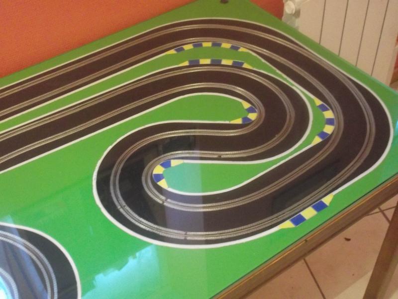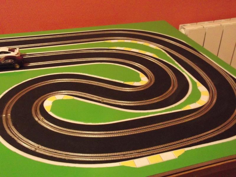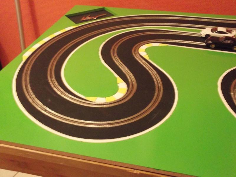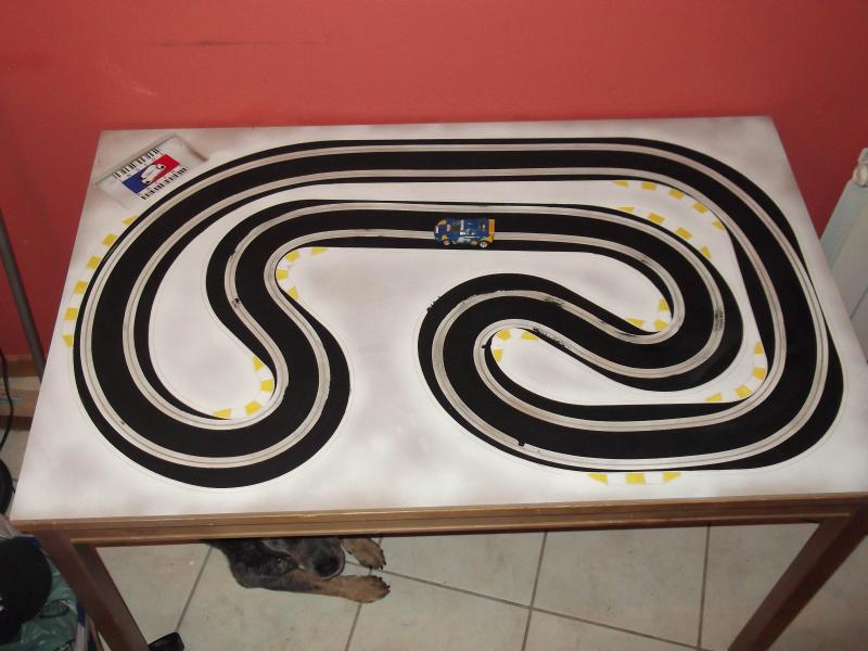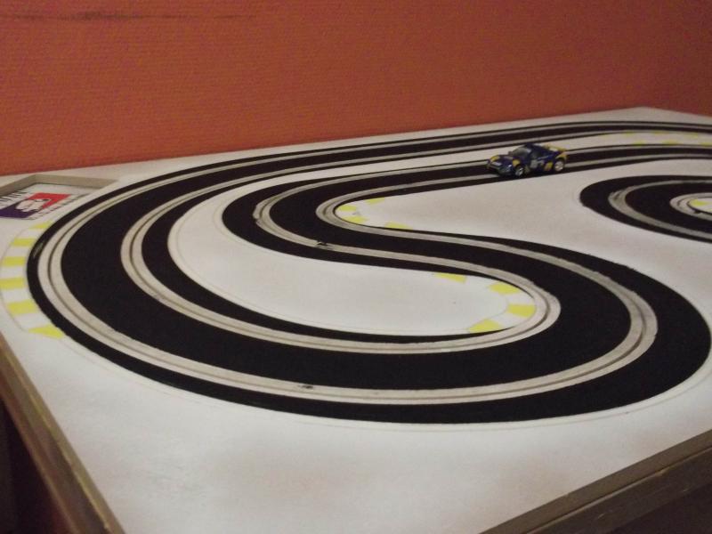 Une petite vidéo de la première piste, branchement rapide avec le ds racing et la voiture qui n'est pas complètement finie. La chicane passe très bien, c'est serré mais ça passe comme sur du velours. Test sous 10v avec une peinture tableau noir acrylique. On peut dire que ça accroche, même un peu trop, je pense qu'avec le temps elle deviendra un peu plus glissante. Mais pour une première avec se type de peinture je suis satisfais.