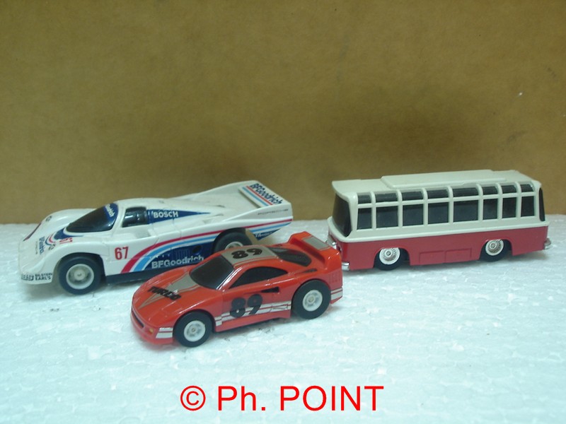 Porsche 962 Tommy, bus Faller et Ferrari Testa Rossa Nikko. La différence est nette :