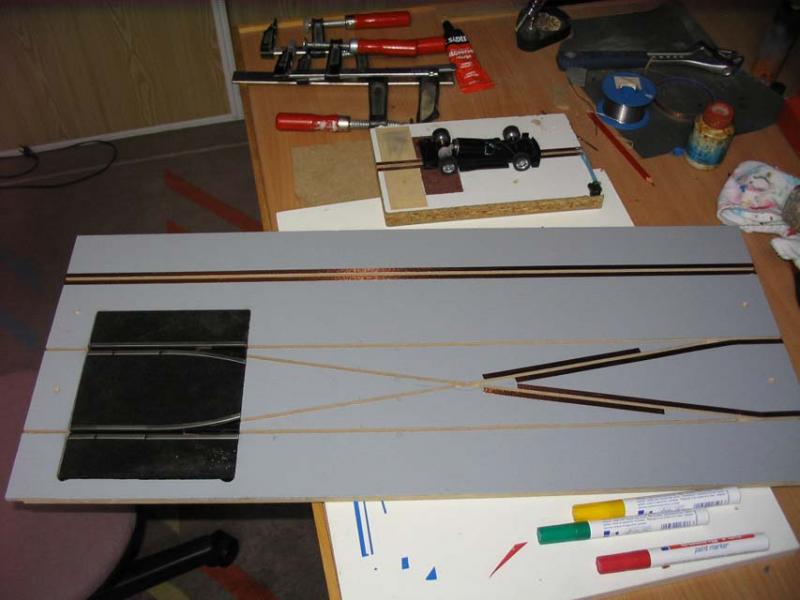 pour les aiguille , j'ai gardé le rail ninco jusqu'a l'aiguille ,ensuite j'ai adouci l'angle pour pouvoir resté a fond lorsque l'on va changer de voie ...