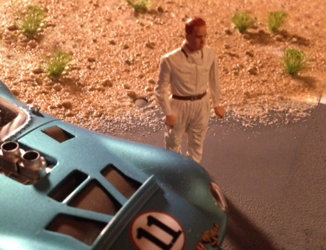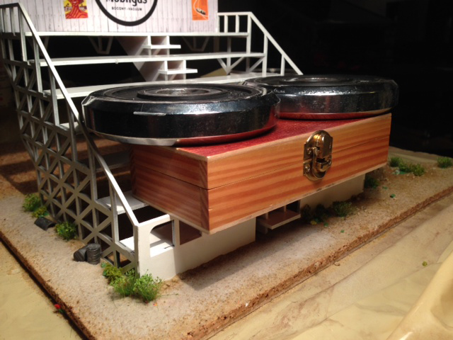 Next step, finition de la tribune, peinture et vieillissement, création d'une barrière sur le devant du diorama pour le séparer de la piste.