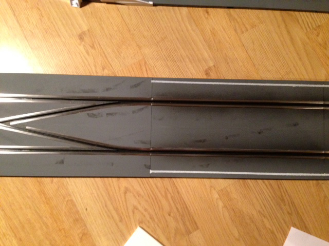 Donc test et pose des bandes blanches latérales et surtout pose d'un voile noir à l'Aérographe avec de la peinture Schmincke autour du rail central d'une largeur moyenne de 6 cm.