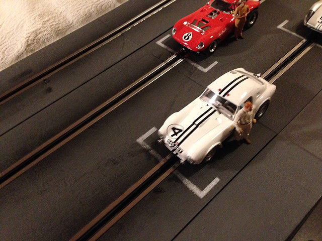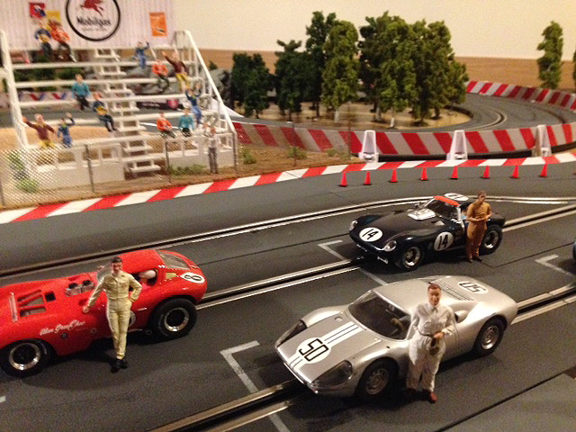 Venant du modélisme ferroviaire, ce qui m'a tout de suite chagriné c'est le côté plastique noir des plaques de route, les inscriptions Carrera partout, la ligne d'arrivée toute moche, le pit stop qui ressemble à un logo Wifi.