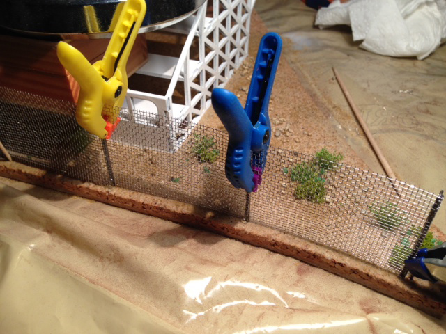 Et mise en place du grillage, brut pour l'instant, sera patiné/rouillé une fois fixe.