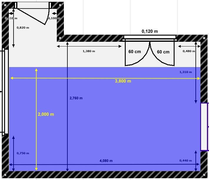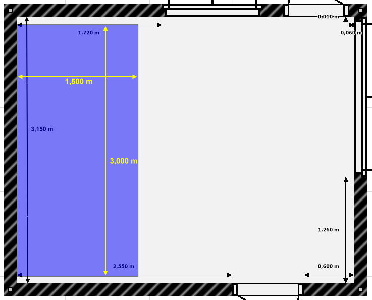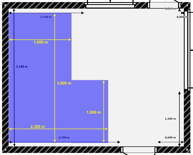 - 1 rectangle de 3 m de large sur 1,5 m de profondeur car je suis coincé par le même type d'armoire