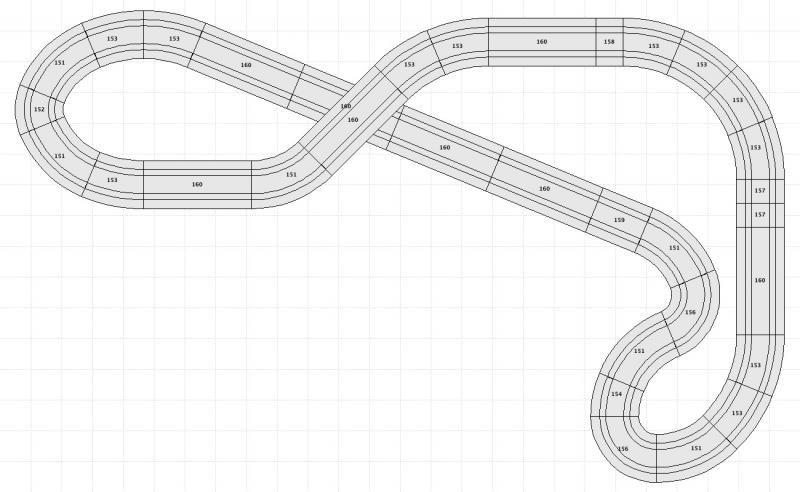 En fait avec une si petite profondeur (80 cm) il faudrait plus de longueur pour tout intégrer (pitlane, longue ligne droite, variété de courbes) et pour éviter les épingles et les R1. C'est ce que j'expliquais à Fenris, on ne peut pas tout avoir sur un circuit à moins de se foutre du côté réalisme et de faire des élévations, une sorte de tracé conçu en une succession d'ovales plus ou moins larges et les uns sur les autres. Le circuit le plus long n'est pas toujours le circuit le plus fun, on commence à le savoir.