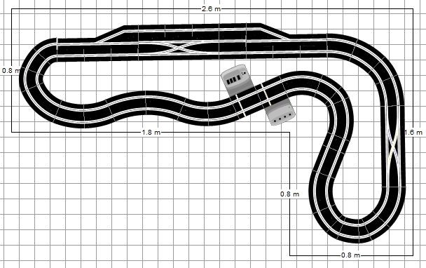 Celui-ci pour ce soir mais dans le sens horaire bien sûr. La ligne droite mesure 2 m et en plus tu as ta pitlane... comme quoi en réfléchissant tout est possible