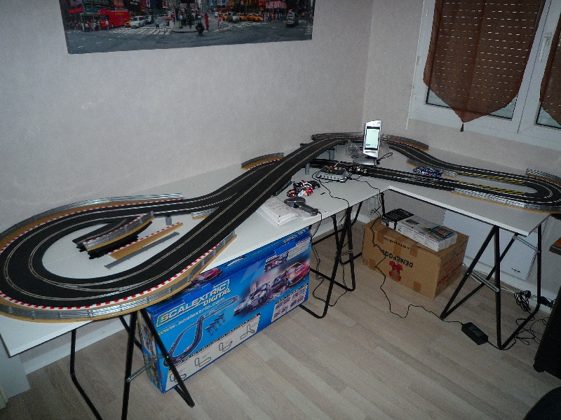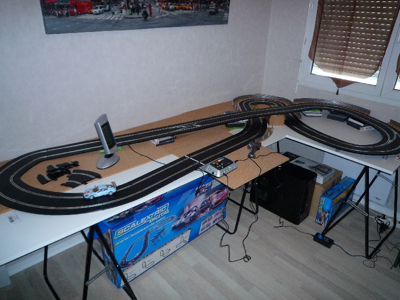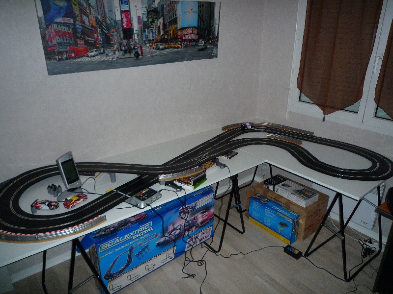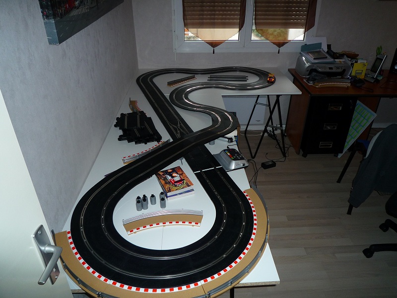Ouais, les dimensions du plateau n'étaient pas prises au hasard mais fonction de l'encombrement de mon énorme bureau d'angle. Et j'ai des bibliothèques, aussi. Enfin à l'origine, ce n'était pas prévu que je puisse me monter un circuit dans le bureau, ça s'est révélé comme ça en bougeant les meubles lors de l'emménagement alors je ne vais pas me plaindre, c'est toujours mieux que d'envahir le salon :)