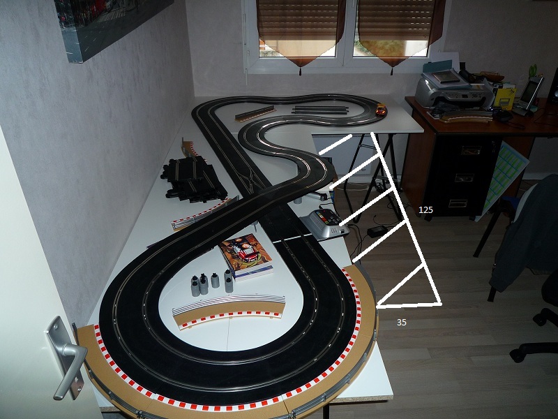 Peut-être que la forme du circuit peut influer sur ton plaisir à rouler ? Si visuellement il ne te plaît pas des masses c'est sûrement moins captivant. Je ne suis pas convaincu que si tu ajoutes les 30/40 cm x 125 ce soit mieux surtout si tu perds en commodité dans ta pièce. Tu risques de le regretter.
