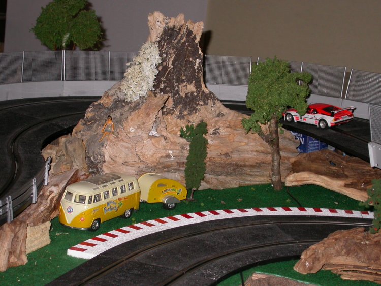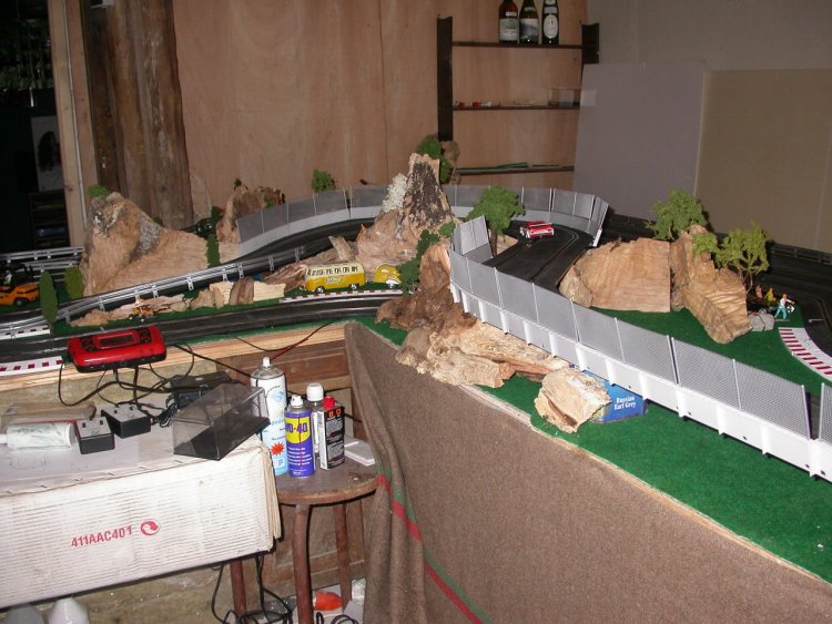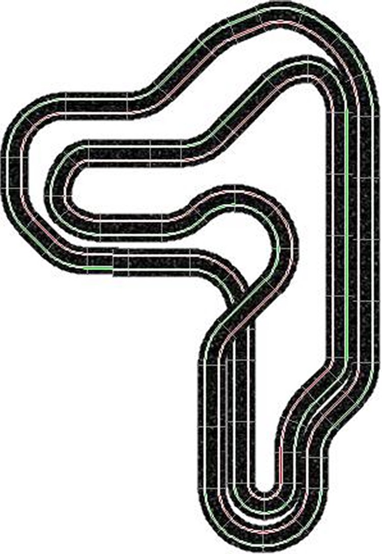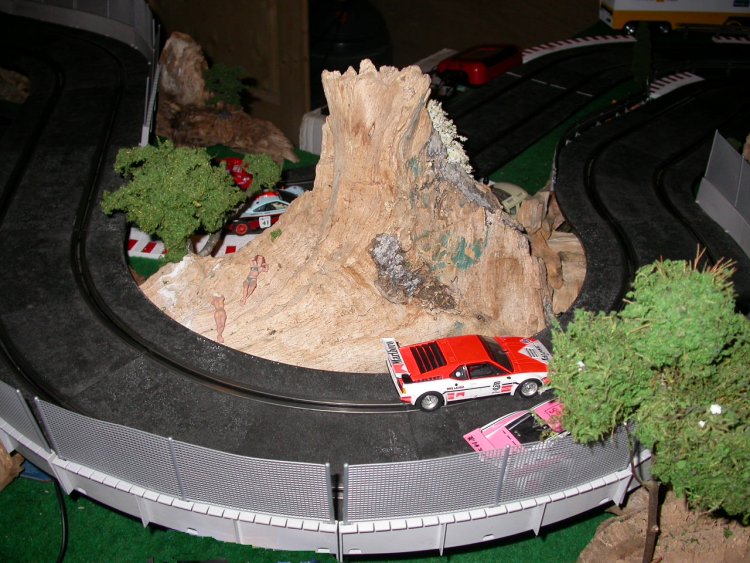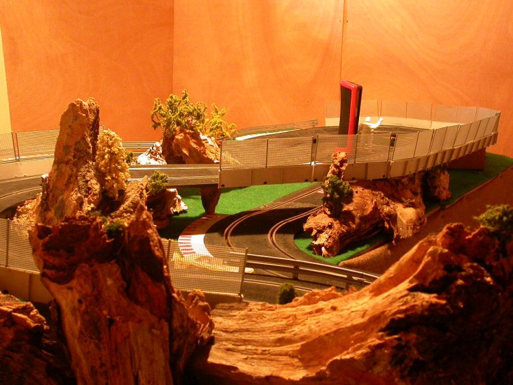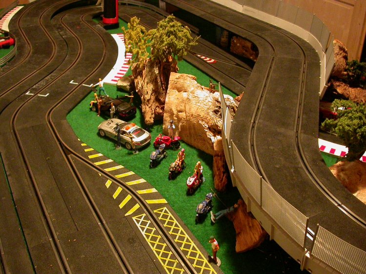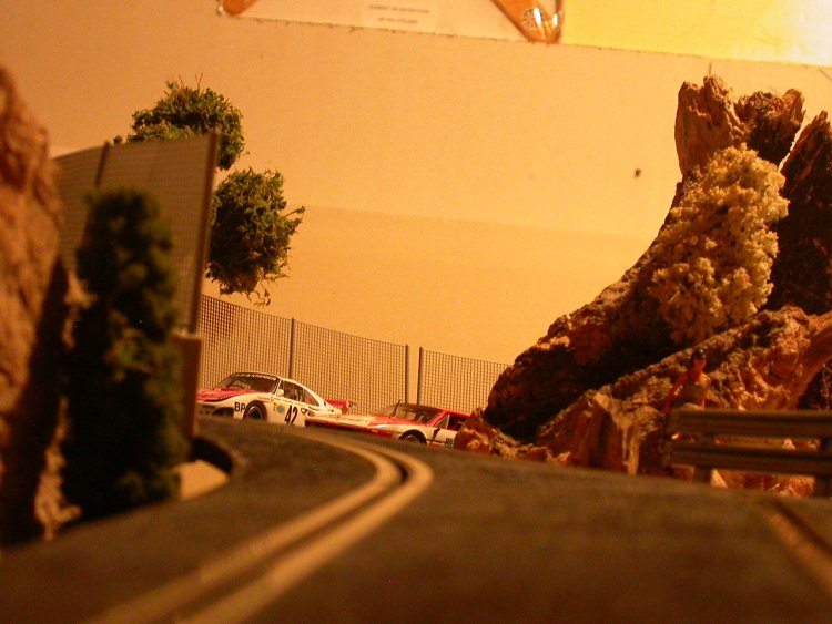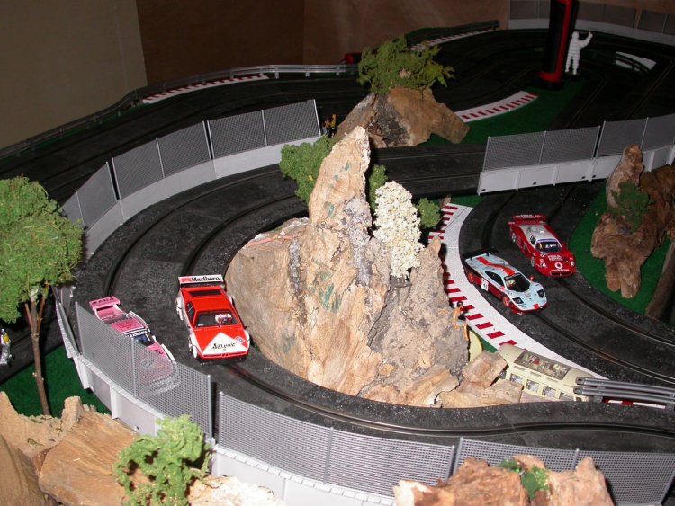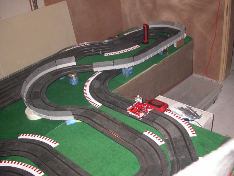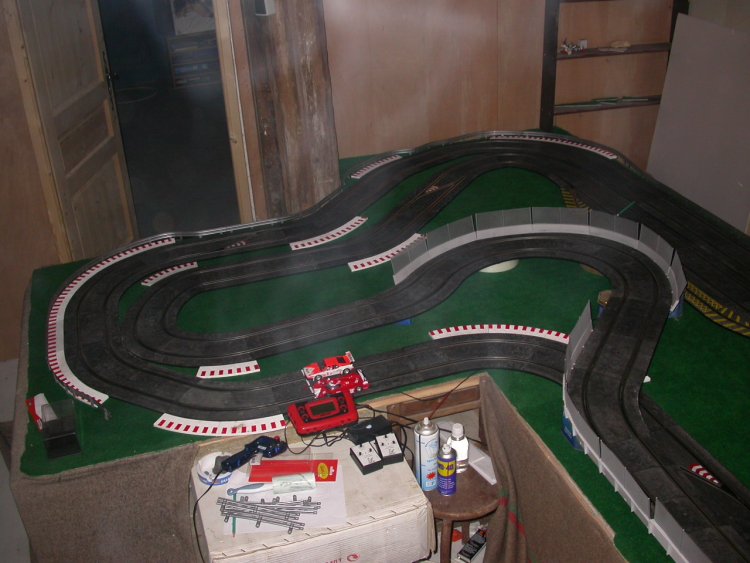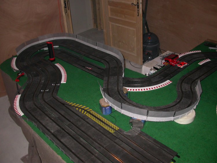 la piste fait 19m pour la portion la plus longue et 18m 60 pour la plus courte ce qui en digital n' a aucune importance ,j'ai un pontage , poignées parma check up,ninco modifié sag , deux transfos ninco digit