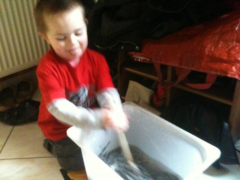 Ensuite mélange avec du plâtre prise rapide. Attention, ne mélange pas tout d'une fois...