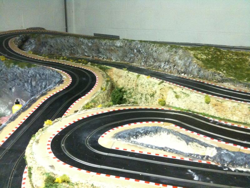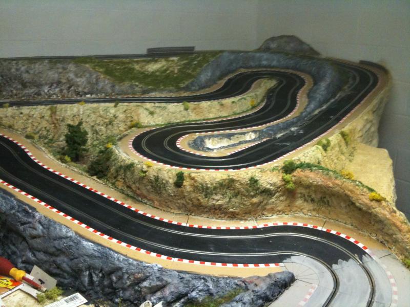 Beau travail , belle mise en valeur du relief avec des tons de pierre très sympa , sobre et de qualité ......encore un peu de végétation pour fignoler la déco et c'est un beau circuit comme je les aime !