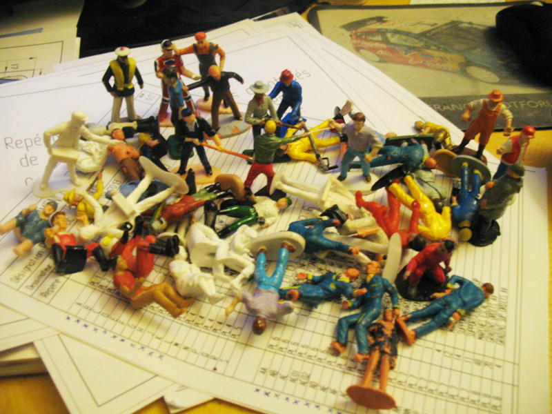 Brocantes ou vides-greniers des cow-bots, des fermiers, etc et en les chauffant un peu pour modifier les bras ou autre,et peut être aussi un peu de Dremel, et après peinture, sinon pour le pilote c'est Scalextric et d'autres Carrera.