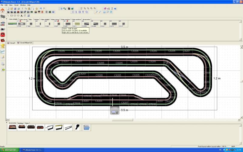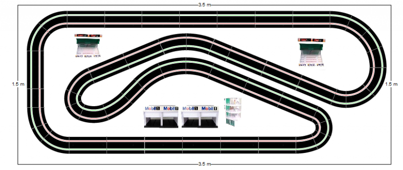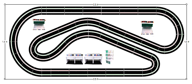 salut, tu devrais essayer de faire des courbes plus souples, "fluides" car je pense que tu vas rapidement t'ennuyer sur ce type de tracé, il faut sacrifier un peu de longueur pour avoir plus de plaisir, les vieux briscards du slot te diront comme moi