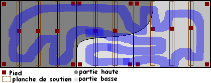 J'ai donnée aupravant les dimensions des planches et du plateau. Ce dernier fera 4,20 mètres par 1,35 mètres environ et comme les planches ne font que 38 centimètre de large il faut que je les assemble et une fois assembler elles ne sont pas bien solides alors je dois mettre des pieds presque sous chacunes d'elle. Et en plus de ça je veux pouvoir couper le circuit en 3 parties il me faut des pieds en plus (cf. les schémas plus haut^^).Mais au final par rapport à mes prévision je n'ai que 6 pieds pour les parties de 4 planches et 5 pieds pour la partie des 3 planches.