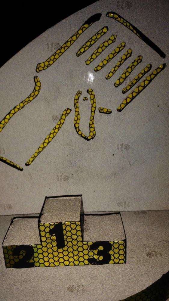 je partage les avis de Teubar et Jegom... petite préférence pour celui de gauche avec un sol "béton" et peut être quelques pubs de sponsors directement sur le podium (sur la même face que les numéros) et sur le mur du fond en damiers ...en tous cas, très beau boulot bravo