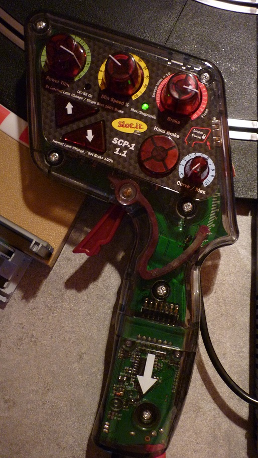 Reçu ce matin ma poignée Slot-it SCP-1 V: 1.1 avec sa cartouche Scp01e-3V3 pour la nouvelle base 6 joueurs Scalextric