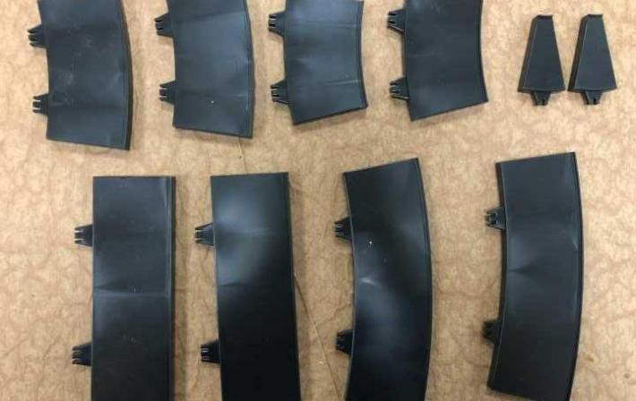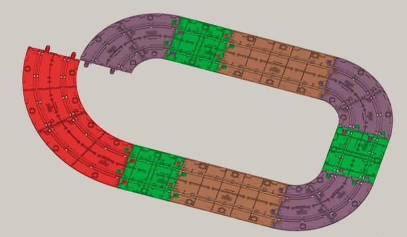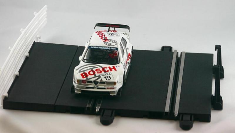 De l '«ancien» Policar, qui avait une distance entre les voies d'environ 7 cm, nous avons pris l'exemple des petites pinces qui permettent de verrouiller les pièces latéralement, et de la rugosité, plus proche cependant de celle de la piste Ninco.