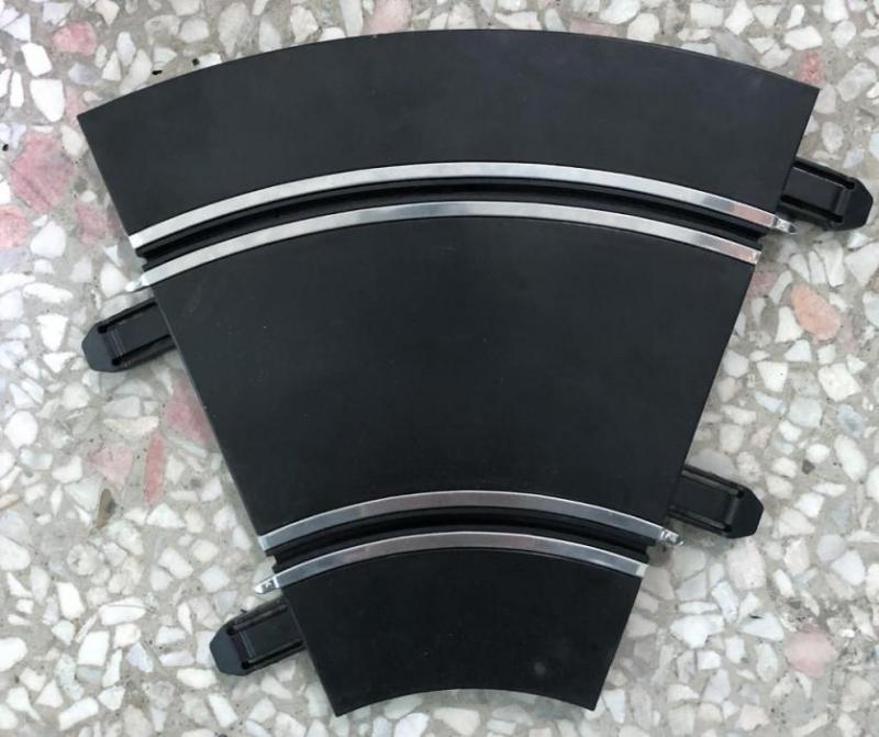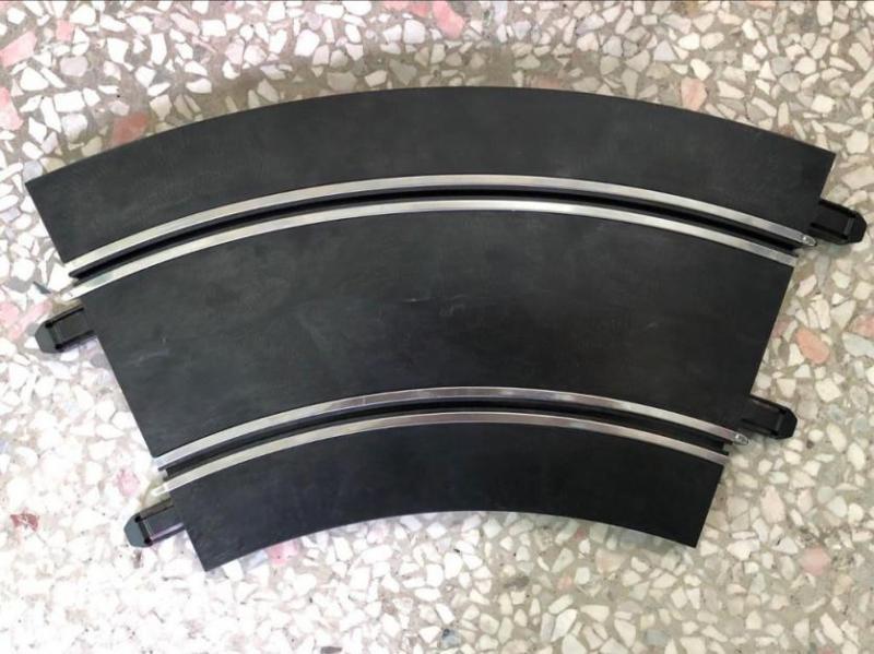 La piste est à peu près aussi large que le Polistil (9cm), également en matériau rigide, et avec des connecteurs frontaux en plastique.